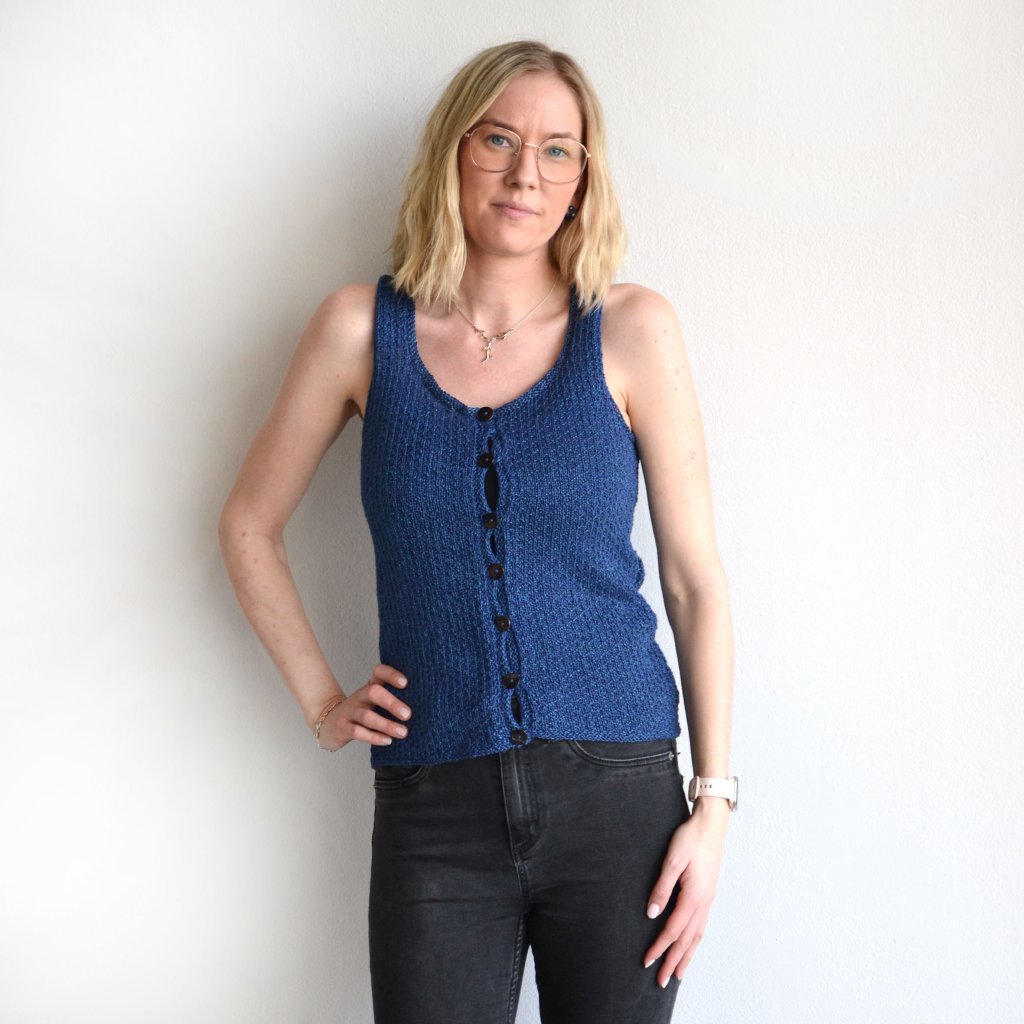 Short or long sleeveless top in Ullcentrum's Linea linen yarn on needles size 3 mm/US 3