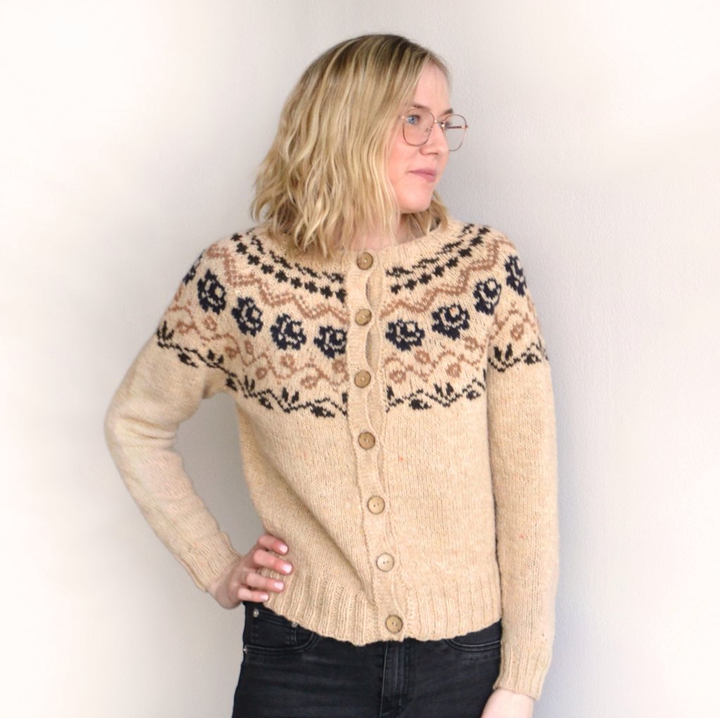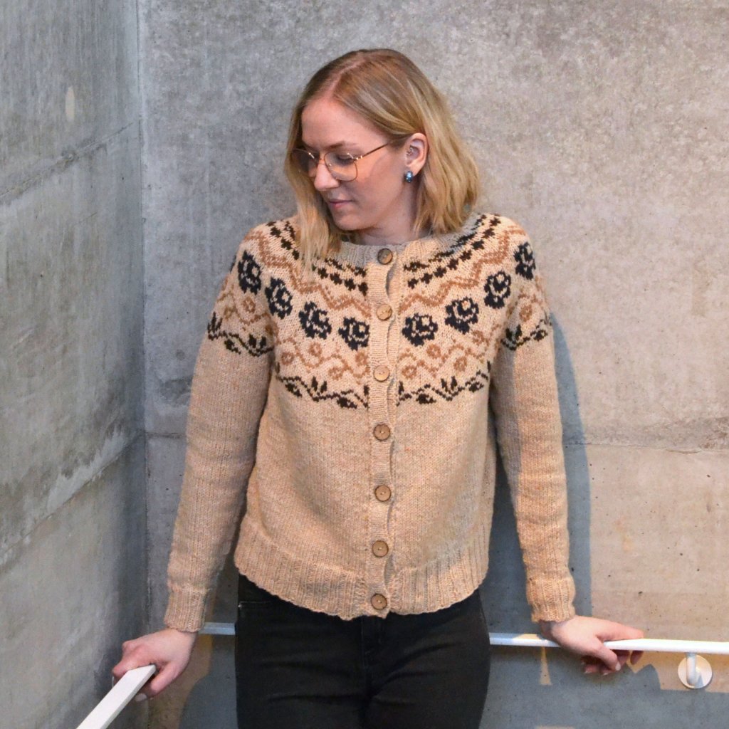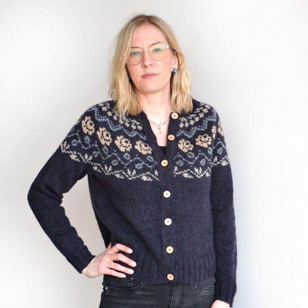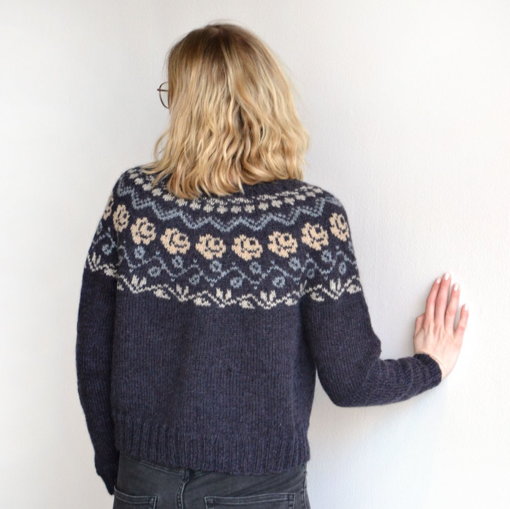 Garn: Ullcentrums tretrådiga ullgarn Stickor: rundstickor nr 4 och 3½, 40 cm och 80 cm, strumpstickor 3½ Garnåtgång bottenfärg: 300 (300) 400 (500) 600 gram Garnåtgång mönsterfärg: 100 (100) 200 (200) 200 gram Vidd runtom: 90 (98) 106 (114) 122 cm